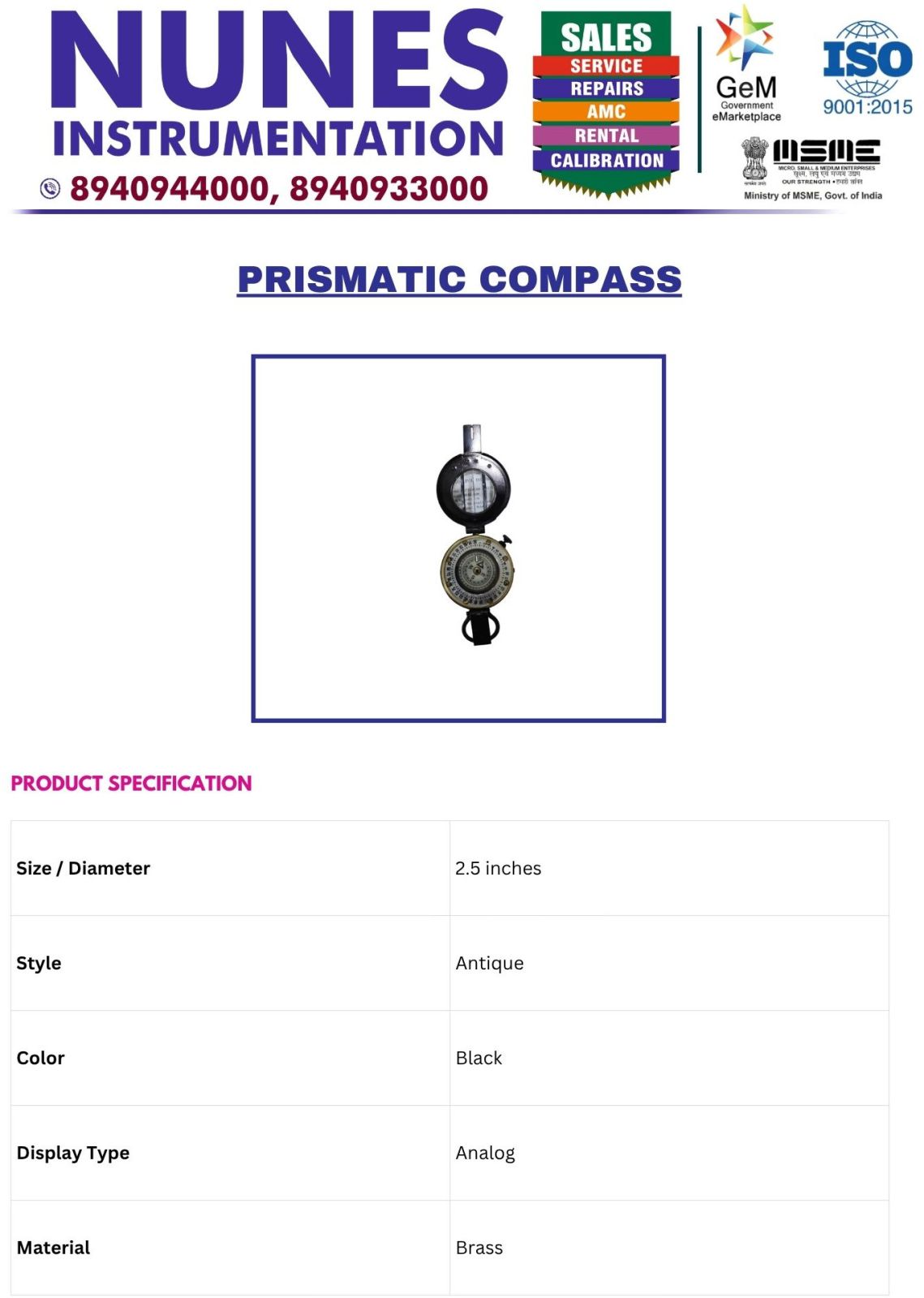 Our offered Product range includes Brass Burton Compass, V Tech Liquid Filled Prismatic Compass, V Tech Clinomaster Clinometer, Brunton Compass and Liquid Prismatic Compass.