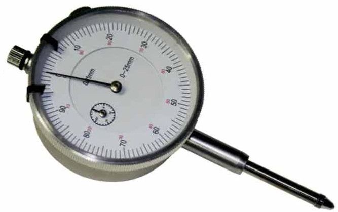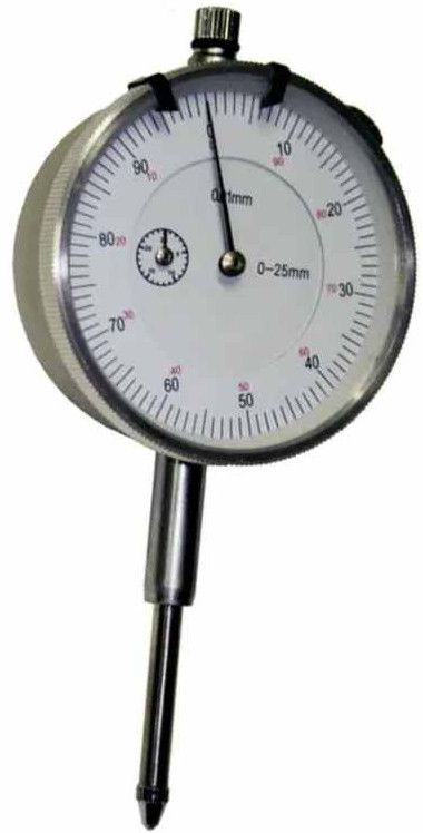 A Dial Gauge, also known as a dial indicator, is a precision instrument used to measure small linear distances and deviations in mechanical and industrial applications. It is widely used in quality control, machining, tool setup, and alignment tasks. The device features a circular dial with a needle pointer that moves in response to small displacements, providing highly accurate and repeatable measurements.