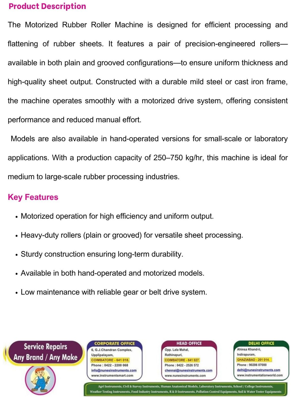 Models are also available in hand-operated versions for small-scale or laboratory applications. With a production capacity of 250750 kg/hr, this machine is ideal for medium to large-scale rubber processing industries.