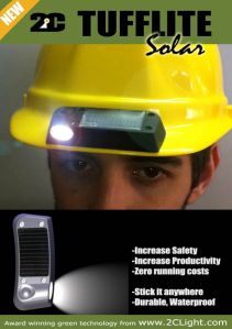 We are offering 2c-tufflite solar light cap. Industrial usesrnrn constructionrn forestryrn transportrn miningrnrnbenefitsrnrn increase safetyrn increase productivityrn zero running costsrnrnstandardsrnrn ce, fcc, ip77, rohs, rn inherently safe....