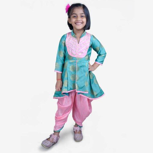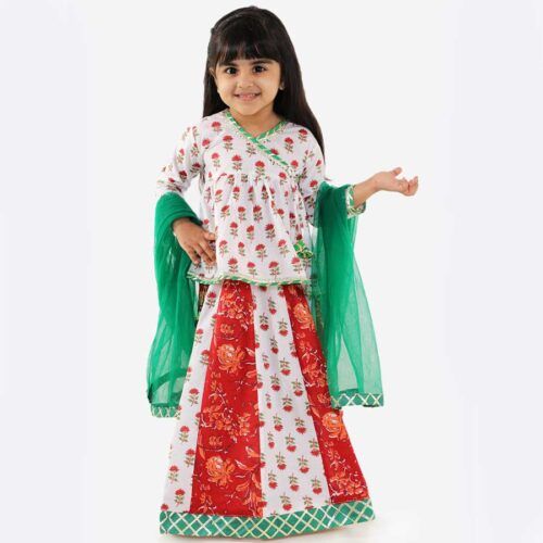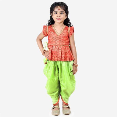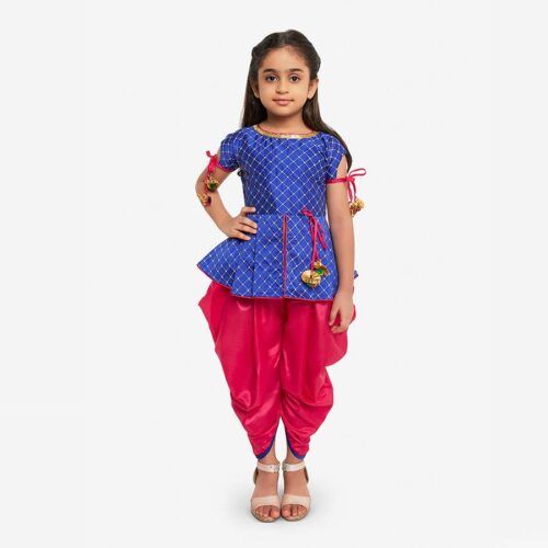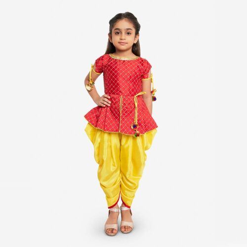 We offer a complete product range of Girls Peplum Choli with Kalidar Lehenga, Girls Collar Top and Dhoti Set, Girls Peplum Top with Dhoti Set, Boys Angrakha Dhoti Set and Girls Short Top with Lehenga