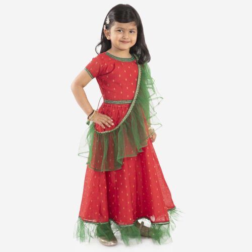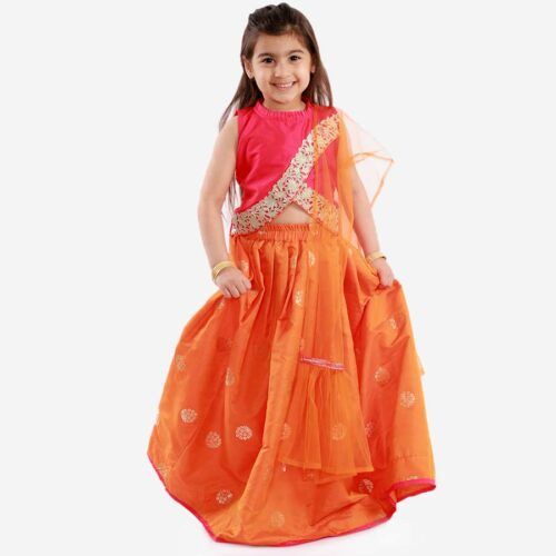 We offer the best product range of Girls Navratri Lehenga Choli, Girls Net Top and Sharara Set, Kids Gold Weave Jacquard White Lehenga Choli, Kids Mirror Bells Lehenga Choli and Kids Gold Kota Checks Lehenga Choli.