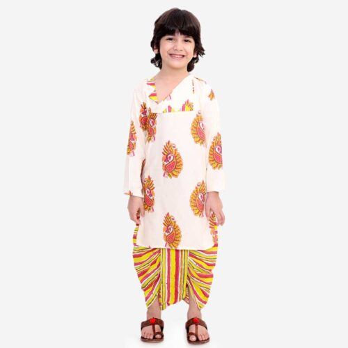 We are leaders in the market for providing best range of Boys Tarini Kurta with Dhoti, Girls Gown, Boys Printed Kurta with Dhoti, Halter Neck Kurti and Dhoti Set and Girls Anghrakha Style Kurti Dhoti Set