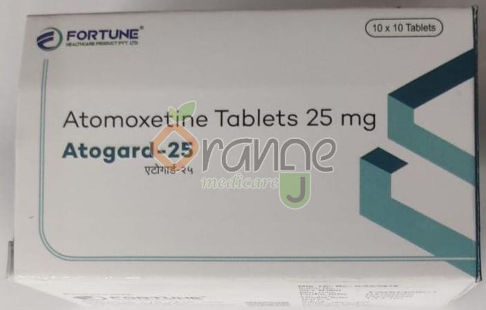 We offer Atogard 25mg Atomoxetine Tablets in a convenient strip packaging of 1x10 tablets, with a shelf life of 2 years. Our brand, Atogard, is trusted for its composition of Atomoxetine, ideal for treating Attention Deficit Hyperactivity Disorder (ADHD). These tablets are formulated for effective ADHD treatment, falling within the strength range of 18mg. As an exporter, supplier, and trader in the pharmaceutical industry, we ensure top-quality products to meet your needs.
