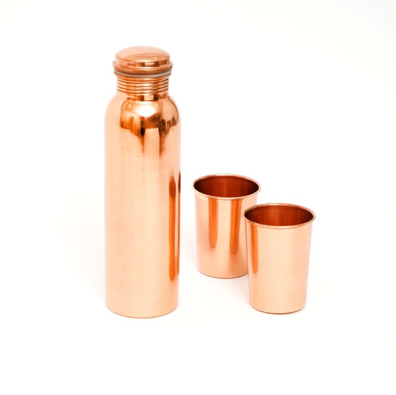 We offer the best product range of Copper Plain Water Bottle Glass Set and Copper Meena Printed Bottle Glass Set.