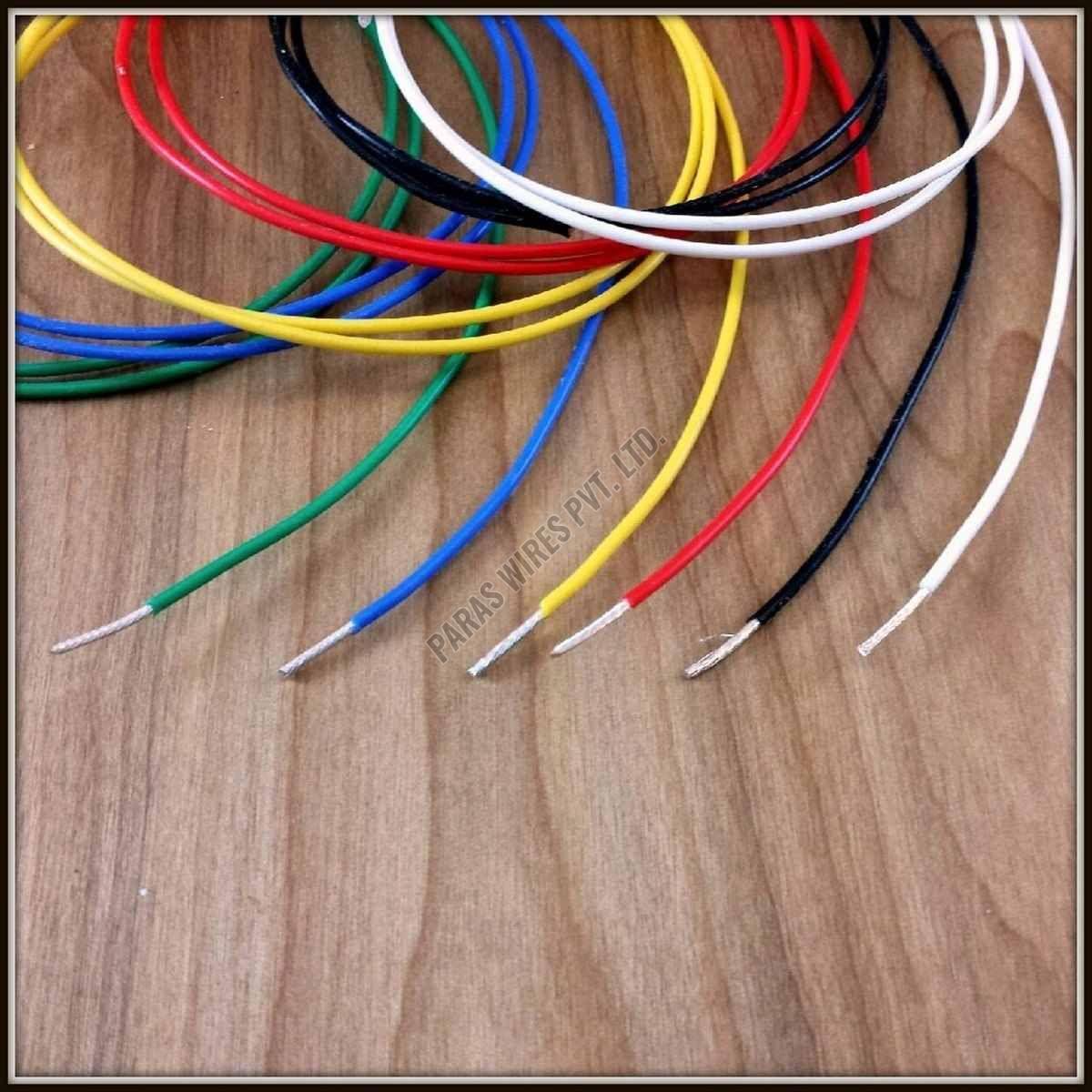 PTFE Insulated Equipment Wires Sizes AWG 06 to AWG 32 Voltage Grade : 250V, 600V, 1000V, PTFE(Polytetrafluorethylene) Wires are tape wrapped wires having uniform insulation thickness around the central conductor compared to the wires insulated by extrusion process. Excellent mechanical and electrical properties with a Small size & weight They propagate neither flame nor fire Resistance to solder iron damage They withstand most solvents, water, moisture and are fungus proof. They are very thin and can withstand very high currents in smaller size wires.