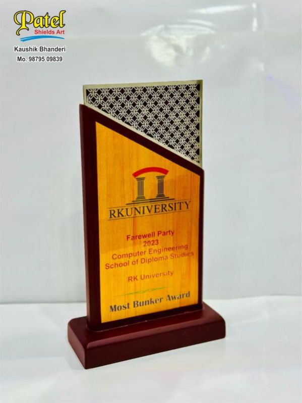 We are a prominent manufacturer of premium quality Memento Award. These are made at our modern infrastructure facility using the best quality of raw materials. These shields are available in a wide range of shapes and sizes. The back portion of these shields is made of fine quality wood, which is procured from reputed vendors of the market. The front portion is made using brass, silver or stainless steel and is completely rust-resistant. The front and rear portions are attached with the help of strong bolts. These shields are an apt way to honor winners and achievers.Features: Rust-resistant Attractive designs Damage-proof Incorporated in the year 2009, at Rajkot (Gujarat, India), we “Patel Shields Art” are a Sole Proprietorship firm and immense pride in introducing ourselves as the prominent Manufacturer and Supplier of the top quality range of Acrylic Awards, Wooden Award Trophy, Custom Medals and Shield Awards. These products are widely applauded by our patrons for features such as alluring look, fine finish, light weight, crack resistance and durability. Under the management of “Mr. Kaushik Bhanderi” (Proprietor), we have acquired a remarkable position in this domain. .