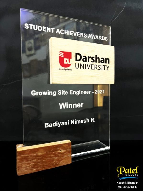 Providing you the best range of engraved acrylic award, acrylic award, acrylic shield, superior acrylic award and custom acrylic award with effective & timely delivery. Incorporated in the year 2009, at Rajkot (Gujarat, India), we “Patel Shields Art” are a Sole Proprietorship firm and immense pride in introducing ourselves as the prominent Manufacturer and Supplier of the top quality range of Acrylic Awards, Wooden Award Trophy, Custom Medals and Shield Awards. These products are widely applauded by our patrons for features such as alluring look, fine finish, light weight, crack resistance and durability. Under the management of “Mr. Kaushik Bhanderi” (Proprietor), we have acquired a remarkable position in this domain. .