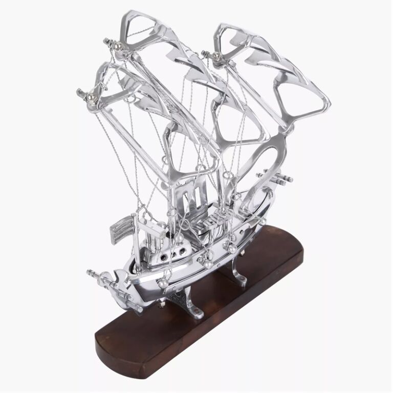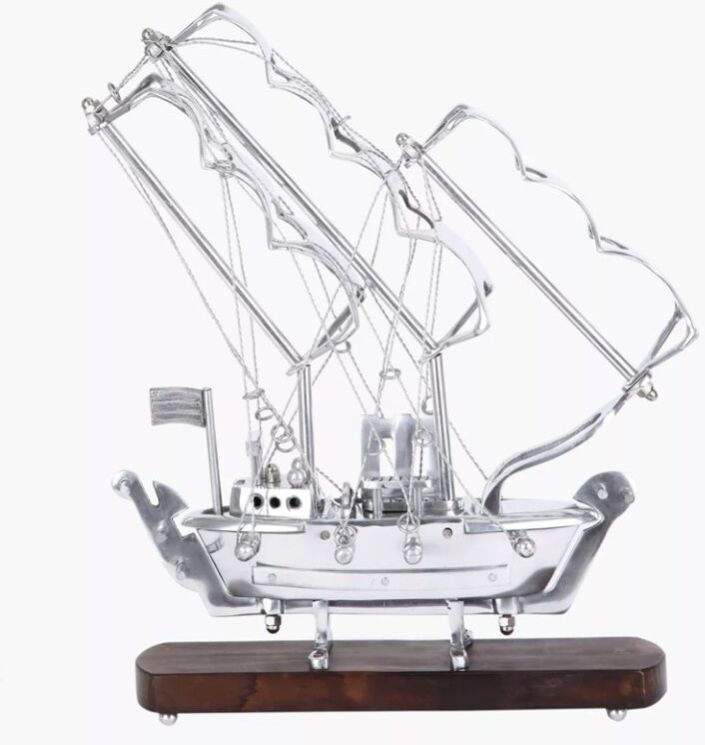 Sail into sophistication with the Aluminum Sailing Ship Decor, a stunning showpiece that embodies elegance and adventure. This meticulously crafted nautical decor adds a timeless charm to your space, making it an ideal choice for living rooms, offices, or study areas. Whether youre a sea enthusiast or simply appreciate intricate design, this piece will captivate and inspire. Made from high-quality aluminum, the showpiece boasts exceptional durability and a polished finish that gleams with sophistication. Its versatile design seamlessly complements coastal, modern, or traditional decor themes. Elevate your home or office with a decor piece that reflects your taste for unique and exquisite craftsmanship. Key Benefits & Features Timeless Durability: Crafted from premium aluminum, it resists rust and wear, ensuring long-lasting beauty.Sophisticated Nautical Charm: Adds a refined touch to any room, perfect for those who appreciate elegant and meaningful decor.Fits Any Space: Its versatile size and design make it suitable for mantles, bookshelves, or desks in various settings.Premium Aluminum Build: Made from high-grade aluminum for strength and a brilliant, polished finish.Intricate Design: Captures the delicate details of a sailing ship, showcasing exceptional artistry and precision.Lightweight and Compact: Easy to place and rearrange, allowing flexible decor options.Sail away with the beauty and allure of the Aluminum Sailing Ship Decor, a perfect blend of durability, elegance, and versatility. Ideal as a centerpiece or a thoughtful gift, its a timeless treasure for those who value artistry and adventure