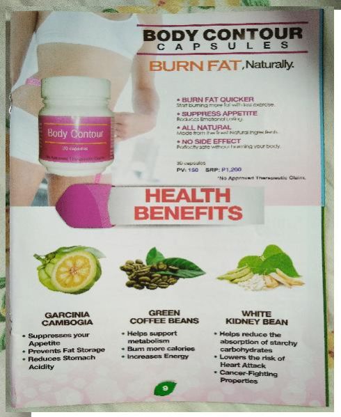 Product has 30 capsules in one bottle. It burns fat naturally and quicker, suppress appetite, no side effect. Health benefits are: prevents fat storage, reduces stomach acidity, help support metabolism, burn more calories, increases energy, helps reduces the absorption of starchy carbohydrates, lowers the risk of heart attacks, cancer-fighting properties.