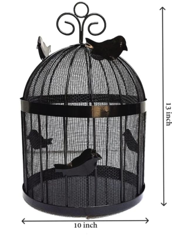 This intricately designed birdcage is a charming decorative piece, perfect for enhancing the aesthetic of your living space, events, or garden. Crafted from durable black metal mesh and adorned with perched and flying metal bird silhouettes, this piece combines vintage charm with artistic flair.