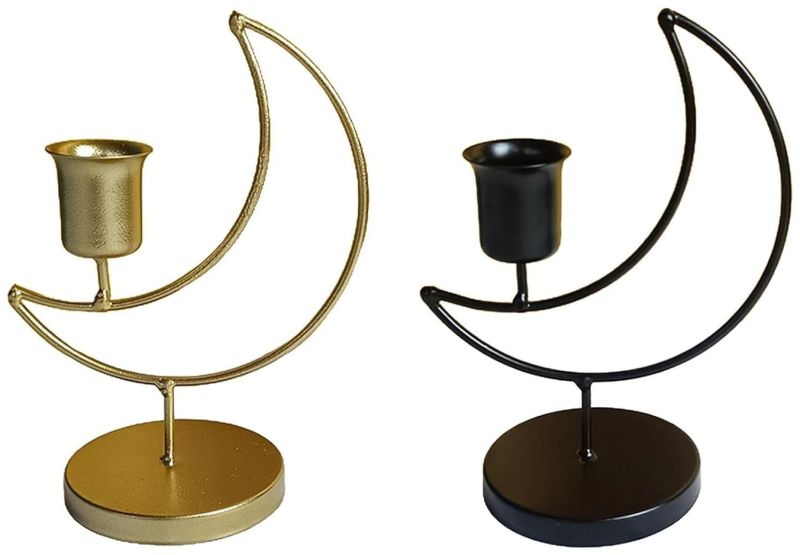 Elevate your home dcor with the LunaGlow Crescent Candle Holders, a captivating set of two moon-inspired candle stands. Crafted from premium metal, this pair features a sleek crescent moon design in complementary matte black and shimmering gold finishes. Each holder is balanced on a sturdy circular base and is perfect for holding taper or tealight candles. Ideal for modern, bohemian, or celestial-themed interiors, these candle holders add a touch of mystique and elegance to any space whether used as a dining centerpiece, mantle accent, or a thoughtful gift.