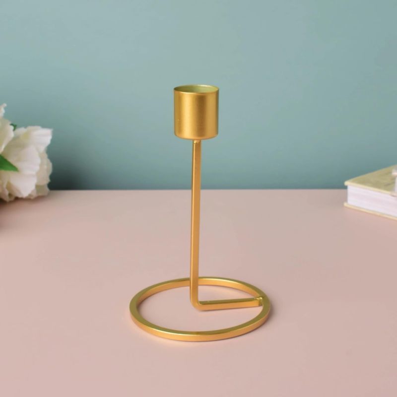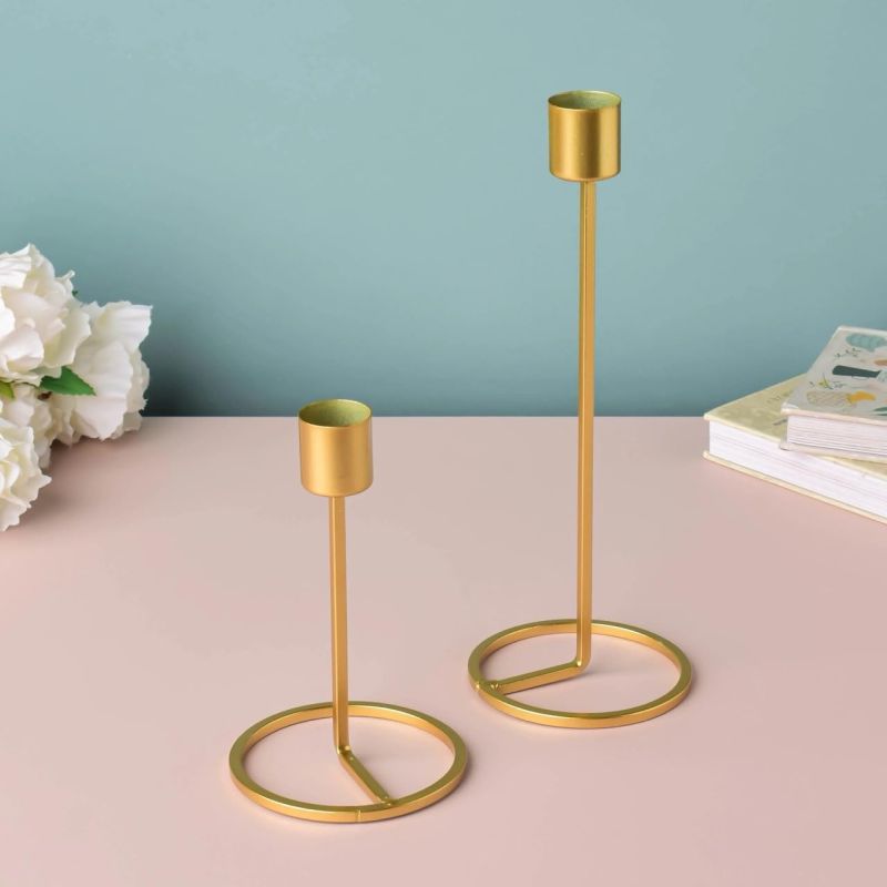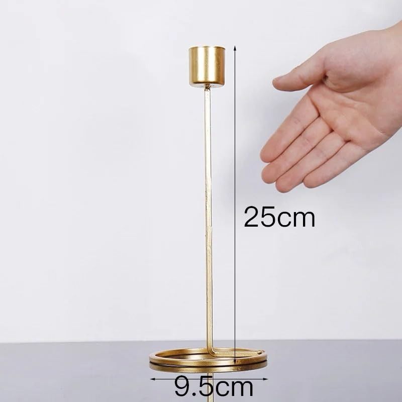Elevate your home decor with the Aurum Minimalist Taper Candle Holders Set of 2. Crafted from high-quality metal and finished in a luxurious matte gold tone, these holders blend modern design with timeless elegance. The sleek cylindrical base and open circular stand provide a balanced, airy look while ensuring stability. Perfect for tapered candles, this set adds sophistication to dining tables, mantels, or special occasions like weddings and intimate dinners. Simple, stylish, and effortlessly chicideal for contemporary and minimalist interiors.