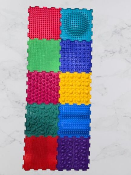 12 interlocking tiles, each with unique textures and colors for sensory stimulation