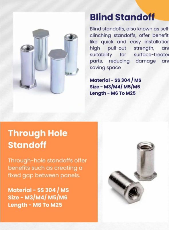 Company deals in Weld Stud, POP Rivets, Rivet Nuts, Clinch Nut, Cage Nut, Blind Stand Off, Through Stand Off, Hex Philips Sems Screw, Pan Philips Sems Screw, Clinch Studs etc.