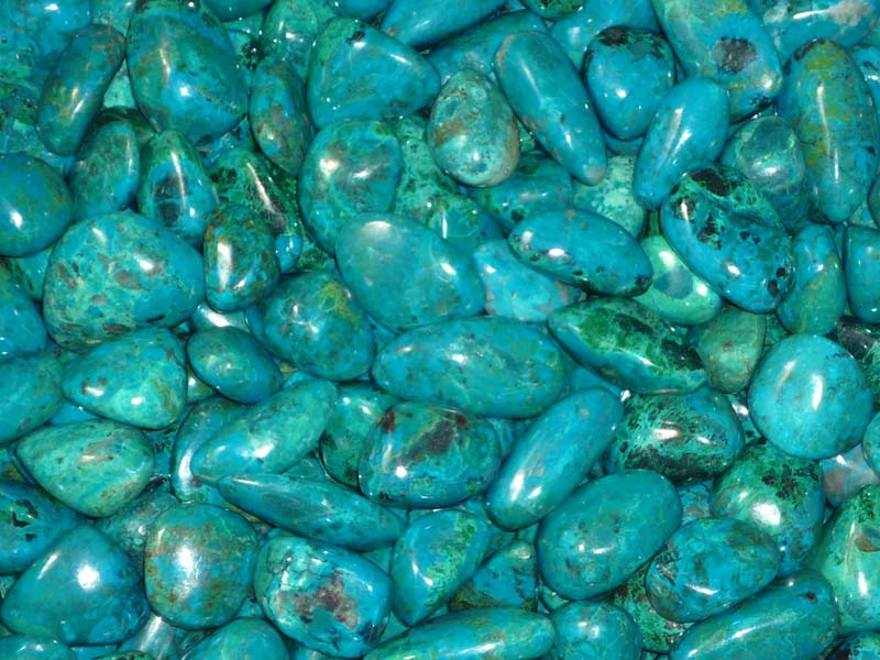 We are offering this tumbled chrysocolla contains lovely blues and greens in gray matrix. This chrysocolla was mined in peru. Chrysocolla is found wherever copper is mined, and is sometimes found mixed with malachite, turquoise, and azurite.