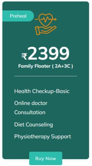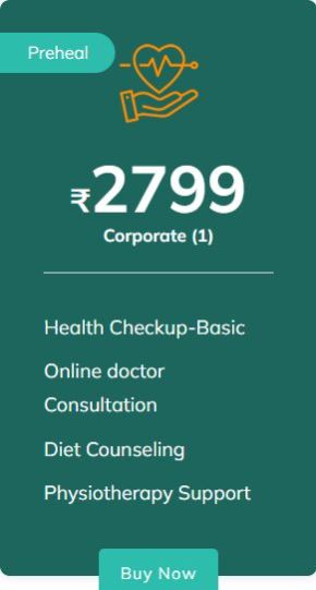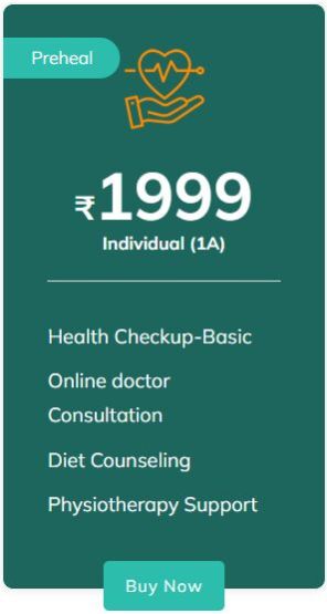 Individual Pack For 3 Adult Benefit: Health Check Up Basics Online Doctor Consultation Diet Counselling Physiotherapy Support.
