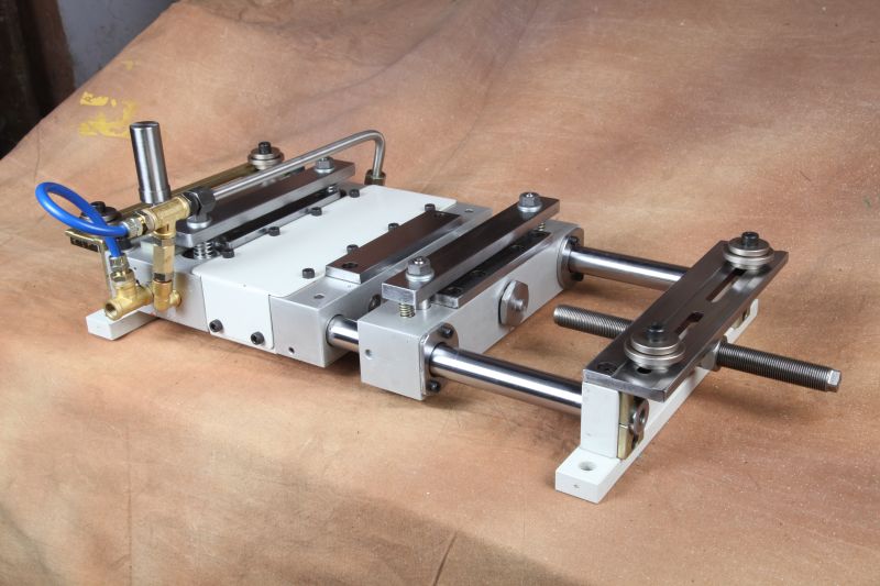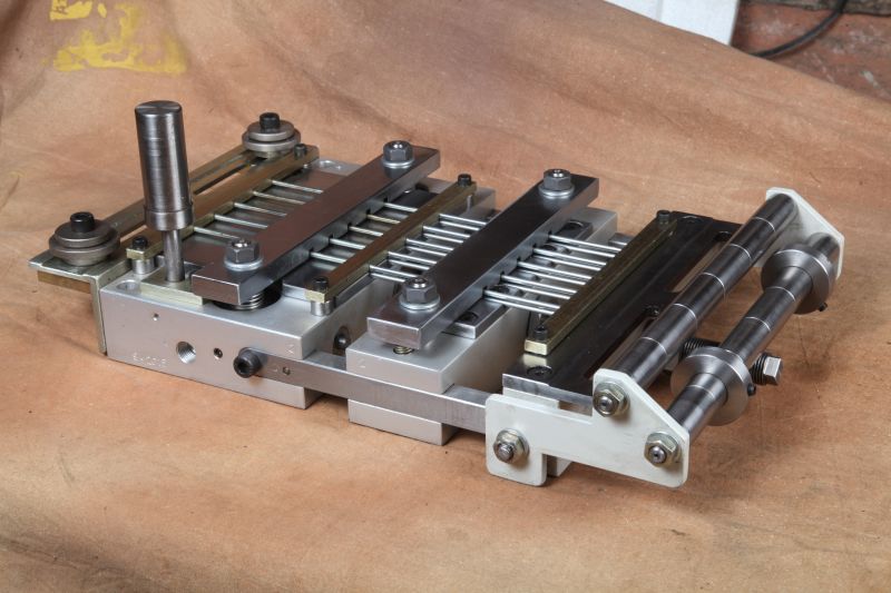 The Feeder will be actuated by Remote Valve via Solenoid Valve, Proximity Sensor and Cam Assembly along with pilot release mechanism for piloted tools and thin strip guiding device for feeding material below 0.5 mm thickness.