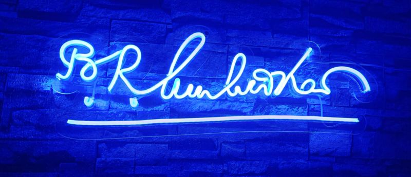 B.R.Ambedkar Signature Neon Light in bright blue glow! A tribute to the great leader, perfect for offices, events, decor, and inspiration spaces.
