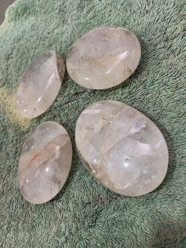Oval Shaped Clear Quartz Plam Gemstone, Size : 0-10mm, 10-20mm, 20-30mm, 30-40mm