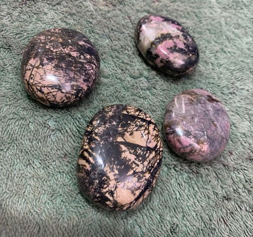 Oval Shaped Rhodonite Palm Gemstones, Size : 0-10mm, 10-20mm, 20-30mm, 30-40mm