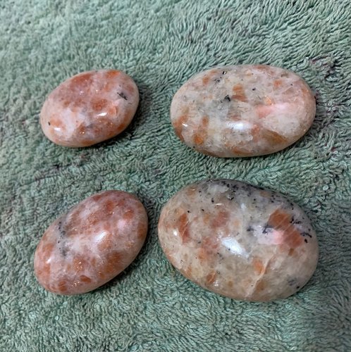 Polished Oval Shaped Sunstone Gemstone, Size : 0-10mm, 10-20mm, 20-30mm, 30-40mm, 40-50mm