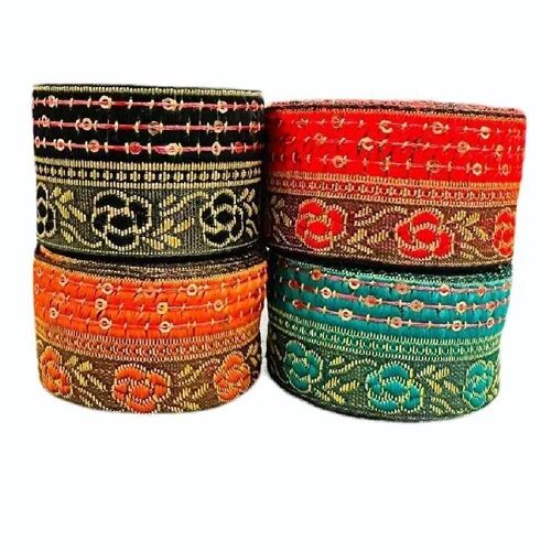 Embroidered 1.3inch Polyester Maharani Lace, Color : Sea Blue (Base)