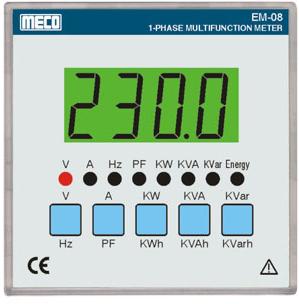 Measures V, A, PF, Hz,KW, KVA, KVAr, KWh, KVAh and KVArh