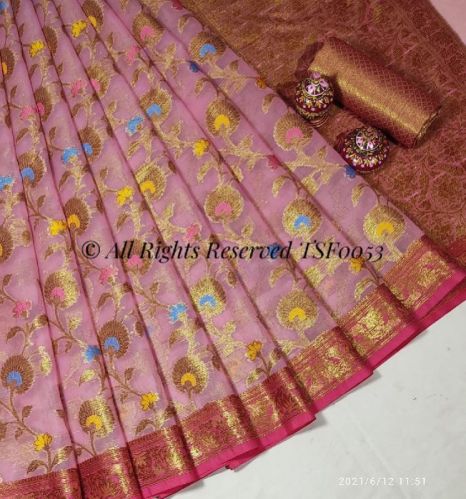 Patola Organza Copper Zaree Saree, For Easy Wash, Width : 7 Meter