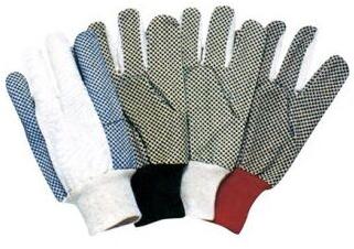 Glove 41002 with PVC dots palm 10 inch 6 / 7 / 8 / 10 and 12 oz Cotton Gloves Cotton gloves Pvc dots on palm Knitted wrist cuff Size:Â 10" Description:Â Cotton gloves, pvc dots on palm, knitted wrist cuff, 10" 6oz, 7oz, 8oz, 10oz and 12oz are available Application:Â For minimal risks only Widely used in many common work such as handling Features