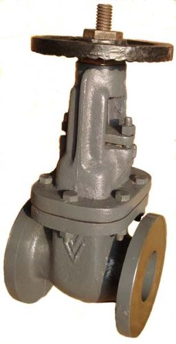 "v v" cast iron gate valve, rising stem with ss working parts, flanges undrilled. Bs:5150 std. Bolted bonnet, outside screw & yoke type design.