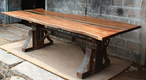 Rectangular Live Edge With Epoxy Table, For Garden, Home, Hotel