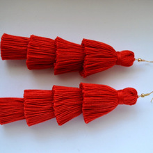 Four Layered Red Tassel Earrings
