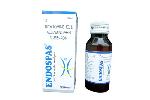 ENDOSPAS SUSPENSION. Composition: Dicylomine Hcl - 5 mg Paracetamol - 125 mg PACKING : 60-ML M.R.P. : 60.00