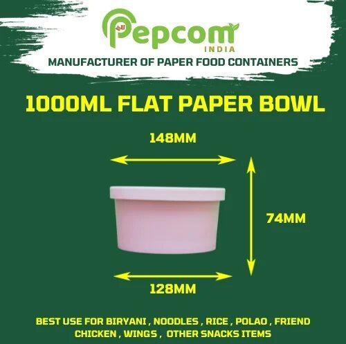 Contact SupplierDisposable Paper Container 1250ml with Double Layer Paper Lid . Best Use for Biryani , Fired Chicken , Popcorn Bucket , Sweets , Rice , Noodles , Polao and Other Snacks items . All our Products are Eco Friendly , Compostable , Safe for Environment and Food Safe . Also Known as Biodegradable Food Containers . All our Products have inner barrier coating with oil and grease resistance to keep foods spill proff and food taste remain same. Oil Resistance coating hold the oil to reflect outside of containers . All our Products are available customize Print option. With the High Strength Paper lid keeps the containers spill proof . As Replacement of Plastic Containers our Products are Environfriendly and an alternate products of Black Plastic Food Containers and White Plastic Food Containers. All our Paper Bowls Containers with Paper Lid can be reheat at microwave and can keep in freezer too. We have a range of Flat Paper Bowl for best use of Biryani , Noodles , Momo , Rice , Chat , Velpuri , Fuchka , Polao , Kababs Etc and Paper Bowls for Any type of Gravy , Dry/ Semi Dry Food Items like Salad , Raita , Ice Cream , Dal , Tadka , Veg /Non Veg Curry like Chicken Curry , Egg Curry , Veg Curry Etc , Maggie , Pasta , Soup , Dahi , Sweets etc. We are Manufacturer , Exporter & Supplier of Disposable Paper Food Containers have Distributor Pan India. Our Manufacturing / Production Capacity 35 Lakhs /Month.