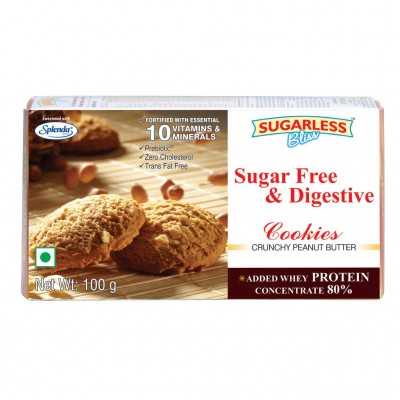 Crunchy Peanut Butter Cookies (100gms) Prebiotic Zero Cholestrol Trans fat Free High in Fibre Zero Sugar Calories Added Whey-Protein Concentrate 80% Fortified with 10 Vitamins and Minerals Vitamin A, Vitamin D2,Vitamin E, Vitamin B12, Calpan, Vitamin B1,Vitamin B2, Niacibamide, Folic acid & Iron. Digestive