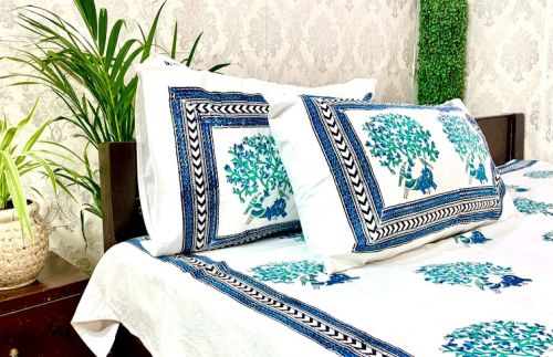 DKWTBLU157 Hand Block Printed Cotton Double Bedsheet?