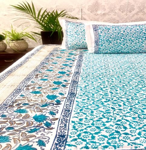 DKWTLBLU123 Hand Block Printed Cotton Double Bedsheet?
