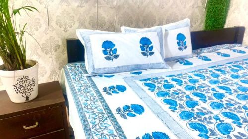 DKWTLBLU124 Hand Block Printed Cotton Double Bedsheet?
