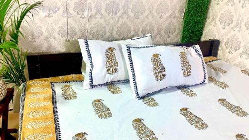 DKWTORNBRN205 Hand Block Printed Cotton Double Bedsheet