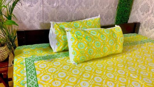 DKWTYLGRN207 Hand Block Printed Cotton Double Bedsheet?