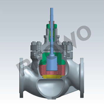 the 10m series balanced labyrinth control valve adopts the labyrinth cage and balanced plug design. The labyrinth sleeve is composed of cylindrical discs with many coaxially distributed labyrinths. According to different technological parameters of the media, different labyrinth specifications and piling layers are designed to form the cage and the cage designed to form the cage and the cage divides the whole flow channel into several tiny circuitous or step flow channels, forcing the fluids to continuously change the flow direction and flowing area and gradually reducing the pressure of fluids, so as to prevent the occurrence of flash evaporation and cavitation and prolong the service life of the trim. The balanced sleeve plug is adopted. The closely fit plug and seat ensure very low leakage. The trim is suitable for service conditions under which blocked flow will easily be produced and cavitation will be caused.