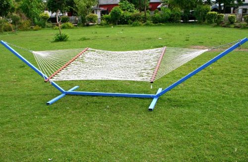 Our metal stands are made of mild steel and are powder coated to provide a better life span. The assembly and installation is very easy and can be easily done by the buyer. The stand provides a very steady base for single, double and large hammocks. The hanging length can be adjusted using the hardware included with the stand. Instruction sheet, hardware and tools are included. Hammocks and pillows are sold separately. Â