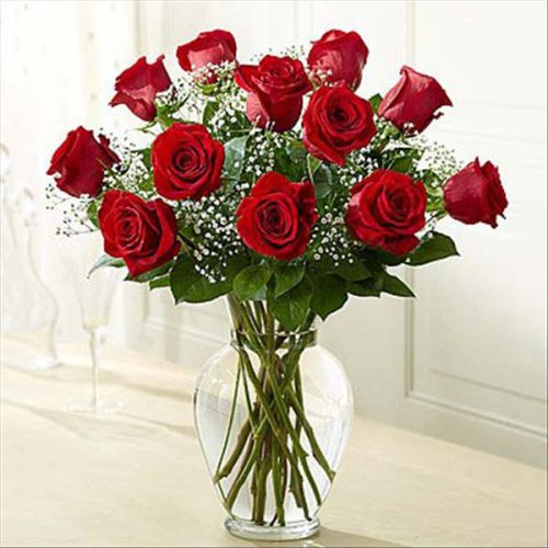 Red is the color of love and what can be better than a bouquet of 12 Red Roses in a Glass Vase to express your feelings. Gift these to your loved ones and build memories to cherish all long.Product Contains:- 12 Red Roses in Vase