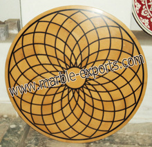 Round Yellow Overlay Marble Pietra Dura Table Top