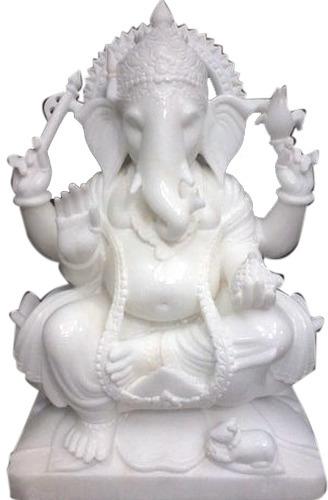 Marble Lord Ganesha White Statue, Packaging Type : Thermocol Box, Carton Box, Cardboard Box