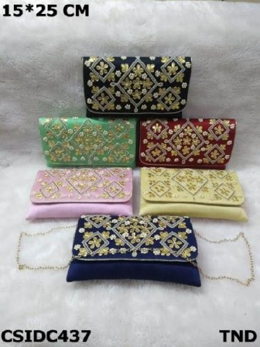 Contact SupplierGota Patti Ladies Clutch Bag which has crafted from raw silk, in addition it makes feel special to every women. Thegota patti work of the bag gives royal look to the clutch bag. Perfect for any special Occasion, Party festive season.