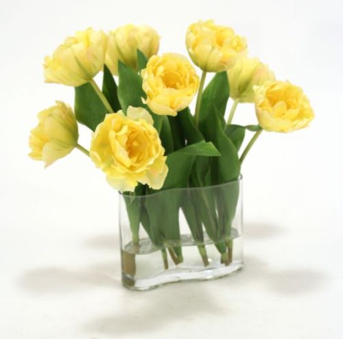 16221# - Waterlook (R) Yellow Parrot Tulips In Clear Wiggle Glass Vase Container Material Glass Dominant Color Lemon Dominant Color Family Yellows Shipping Weight 8 Ships