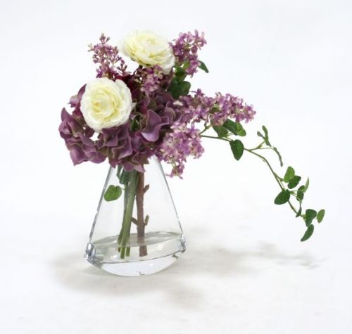 16223# - Waterlook (R) Lavender Lilacs, Hydrangeas, Cream-White Ranunculus in Glass Rocker Vase Container Material Glass Dominant Color Lavender Dominant Color Family Purples Shipping Weight 3 Ships