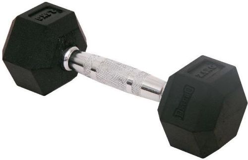 Fixed weight, rubber coated, hexagon dumbbell available in weights 2,2.5,3,4,5,6,7.5,8,9,10,12.5,15,17.5,20 kgs